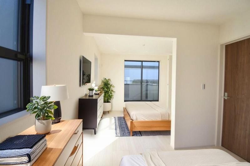 洋室はモダンなデザインと機能性を備え、快適な生活空間に。明るい窓から差し込む自然光が広々とした空間をさらに明るく開放的に感じさせます。