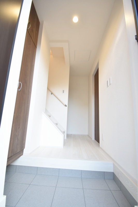 玄関は家の第一印象を左右する重要な場所。ほどよい広さとスタイリッシュな色遣いが印象的です。