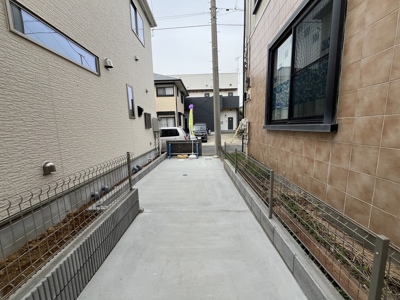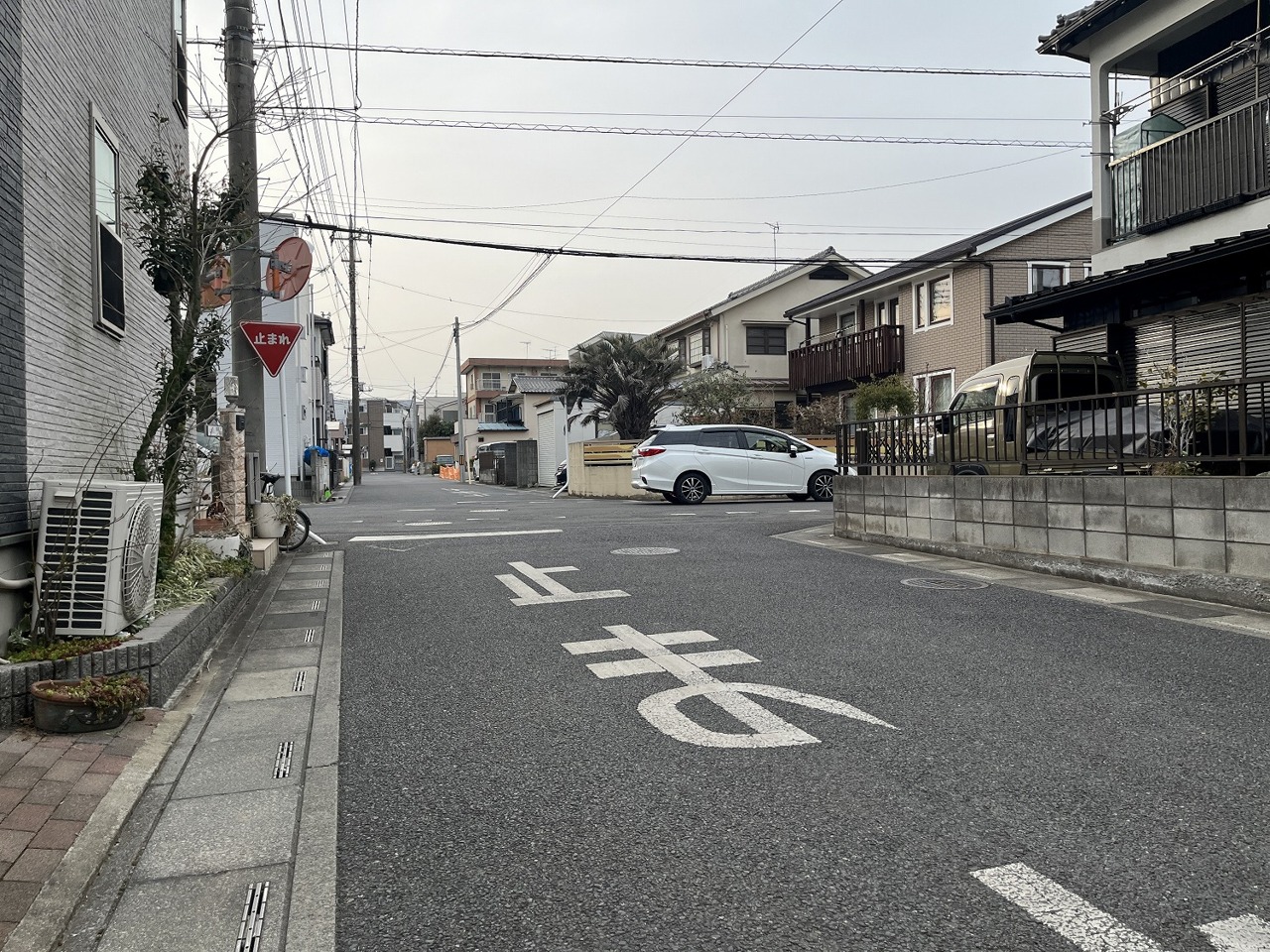 C号棟 幅員の狭い道ですが、車通りの少ない住宅街に立地してます。