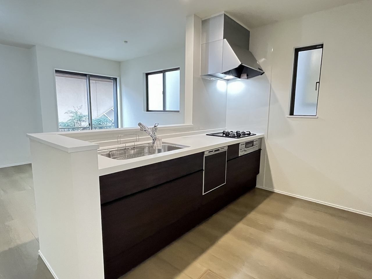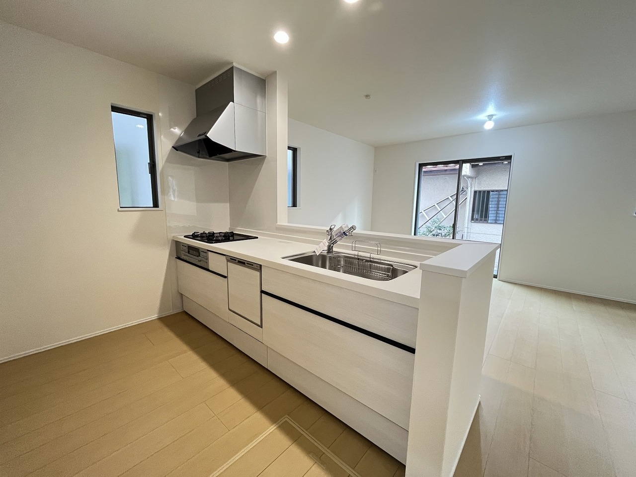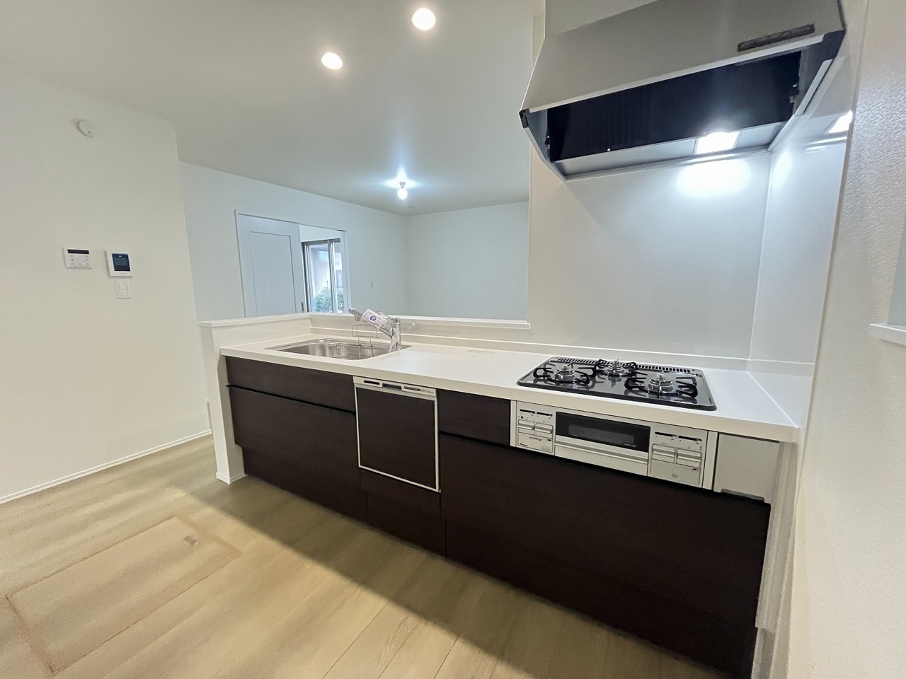 C号棟 リビングで遊ぶお子様を見守りながらお料理ができる、対面キッチン。