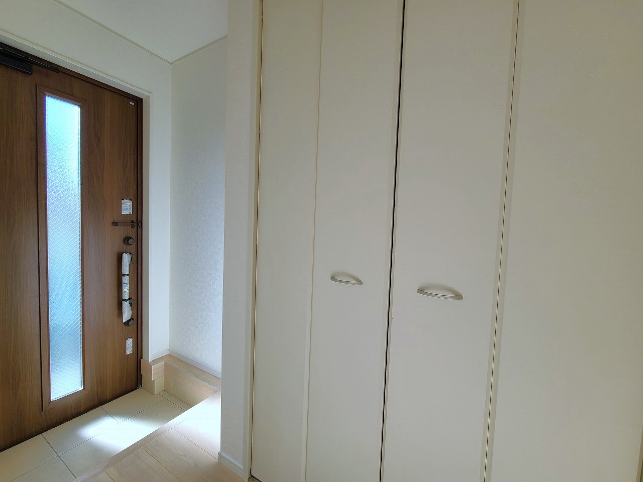 明るく開放的な玄関、靴の脱ぎ履きもしやすく、収納も豊富でご家族皆様の靴をスッキリ収納できます。