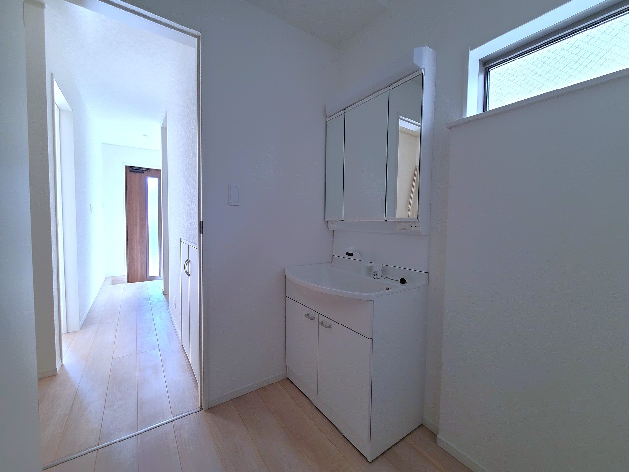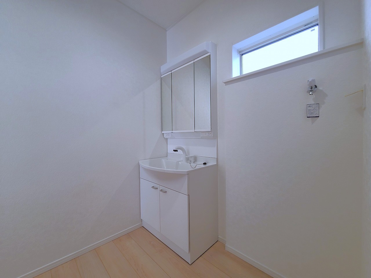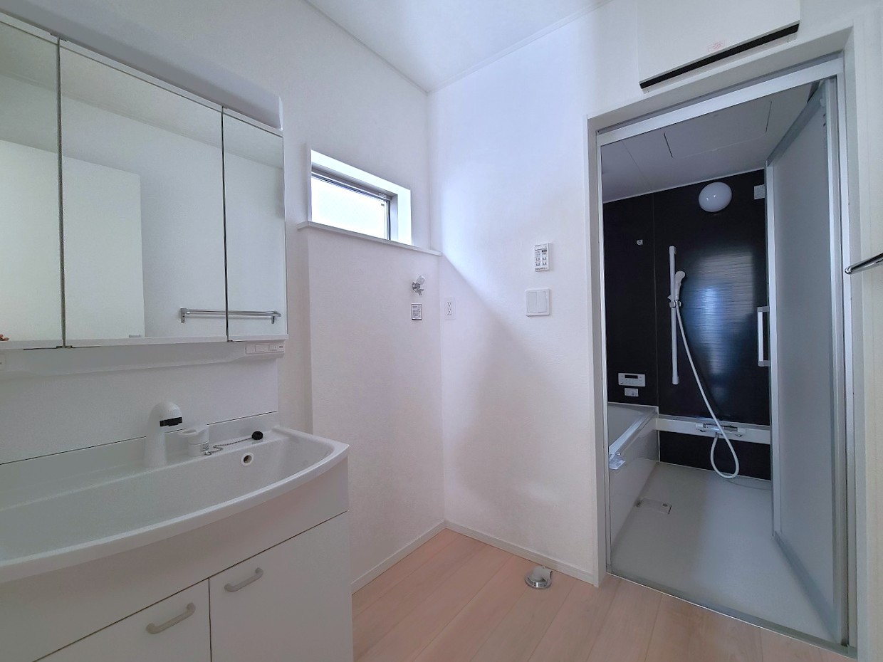 3号棟 使い勝手の良い洗面台、窓があることで換気もしやすく清潔感のある空間を保てます。