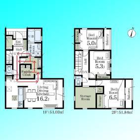 | 間取 | 3SLDK (LDK16.2帖、洋室6.5帖、洋室5.3帖、洋室5.0帖) | ||