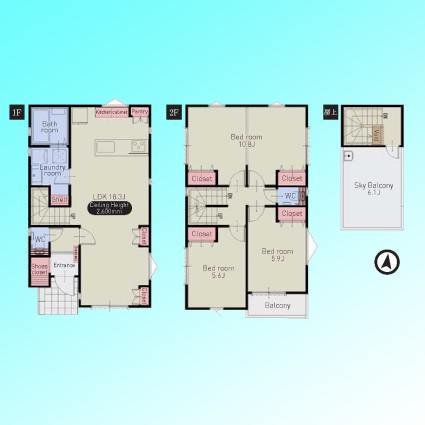 | 間取 | 3LDK~4LDK (LDK17.3帖、洋室6帖、洋室5.4帖、洋室5.4帖、洋室5.4帖) | ||