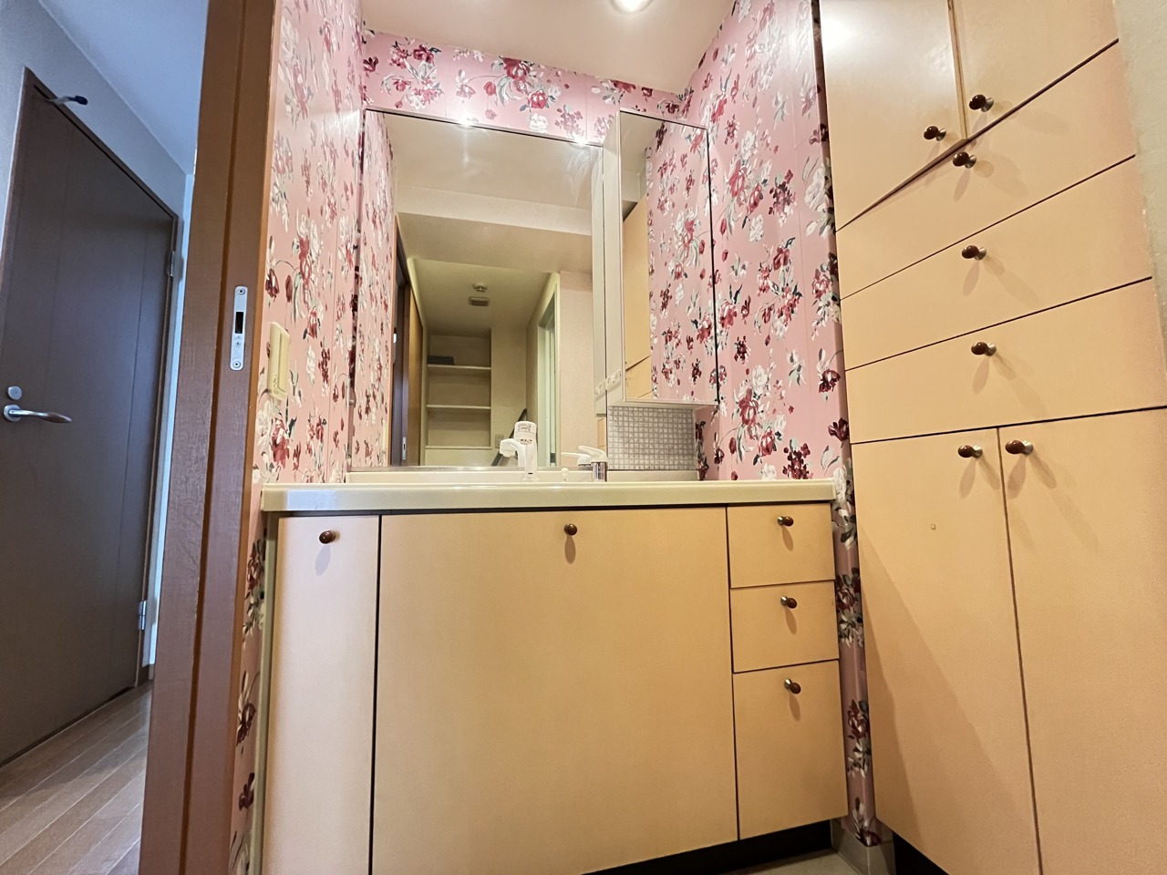 洗面台の横には大きな収納が有ります。
