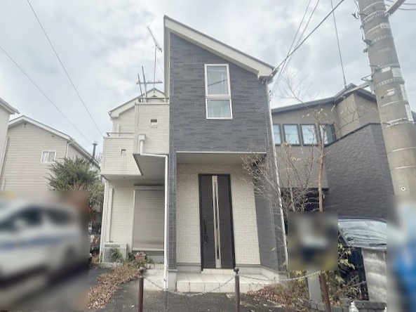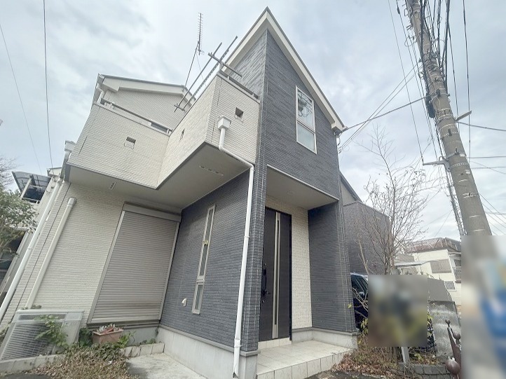 周辺の街並みの中で適度な主張、生活に溶け込むシンプルなデザインの外観が魅力の一戸建です。