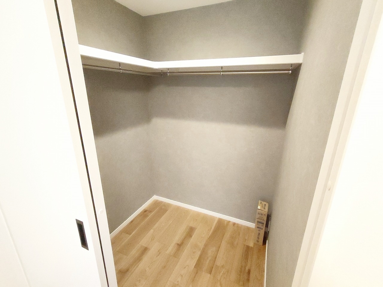 季節物の衣類もスッキリ収納できるウォークインクロゼット。
