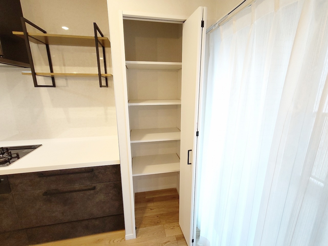 キッチン横にはパントリー収納。食品の蓄えは防災用としても。