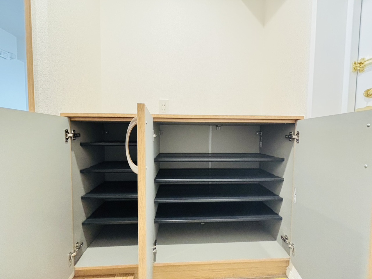 収納のある機能的な玄関。上り框は低めになっています。