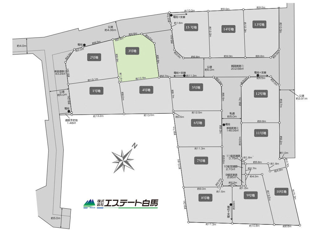 | 接道 | 南西側5M私道に接道 北東側3.9M公道に接道 南東側5M公道に接道 南西側5M公道に接道 |