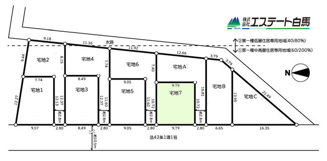 | 用途地域 | 第一種中高層住居専用地域 | 建ぺい率 | 60% |