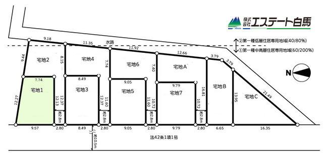 | 用途地域 | 第一種中高層住居専用地域 | 建ぺい率 | 60% |