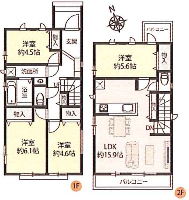 | 間取 | 4LDK (LDK15.9帖、洋室6.1帖、洋室5.6帖、洋室4.6帖、洋室4.5帖) | ||