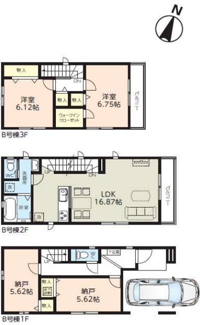 | 間取 | 2SLDK + 2SSLDK (LDK16.87帖、洋室6.75帖、洋室6.12帖、S5.62帖、S5.62帖) | ||