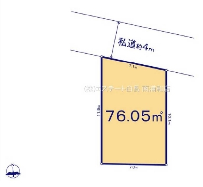 | 土地面積 | 76.05m² 公簿 (私道209m²別に有、私道持分比率:1/12) | ||