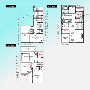 | 間取 | 3SLDK (洋室6.1帖、S4.6帖、LDK19.6帖、洋室9.3帖、洋室5.5帖) | ||