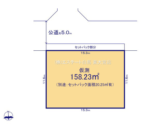 | 土地面積 | 158.23m² 実測 (セットバック20.25m²、仮測) | ||