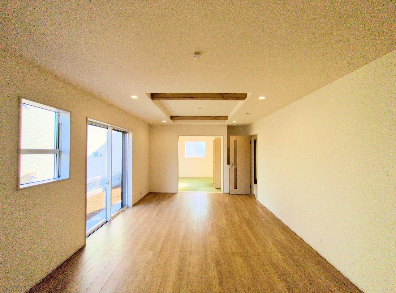 LDK+隣接和室、開放すれば計約22.25帖。おもてなしスペースにもどうぞ。