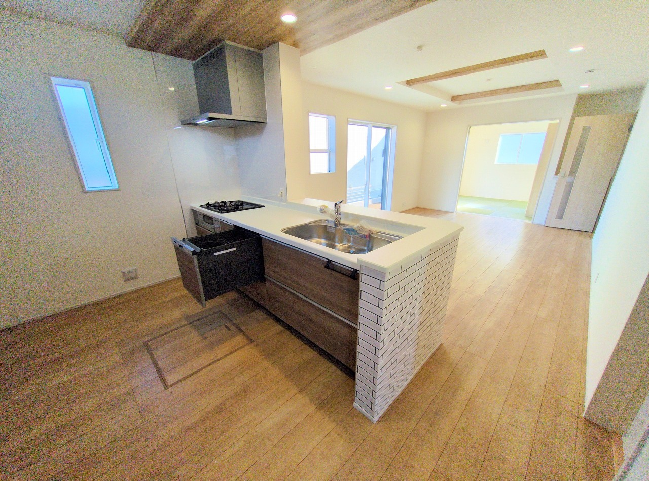 リビングで遊ぶお子様を見守りながらお料理ができる、対面キッチン。