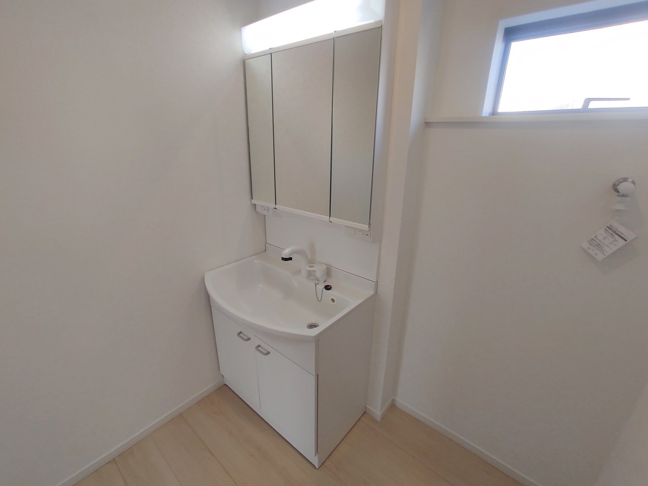 2号棟 化粧台はやっぱり色が一番。シャワーヘッド付きの収納充実タイプです。 2026/03/21m