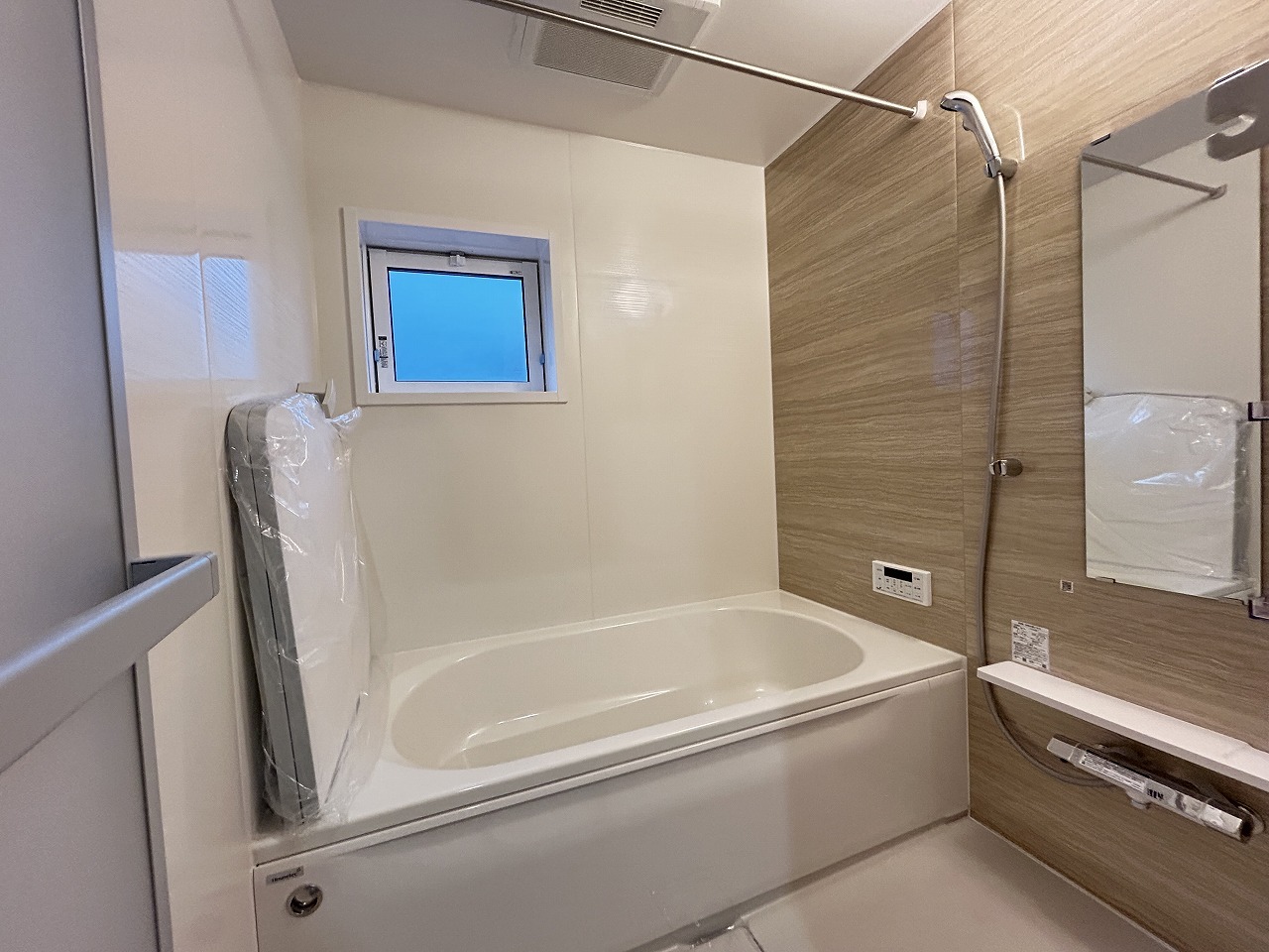 4号棟 広々1坪タイプのゆったり浴室ユニット。防カビ・抗菌素材なのもうれしい。