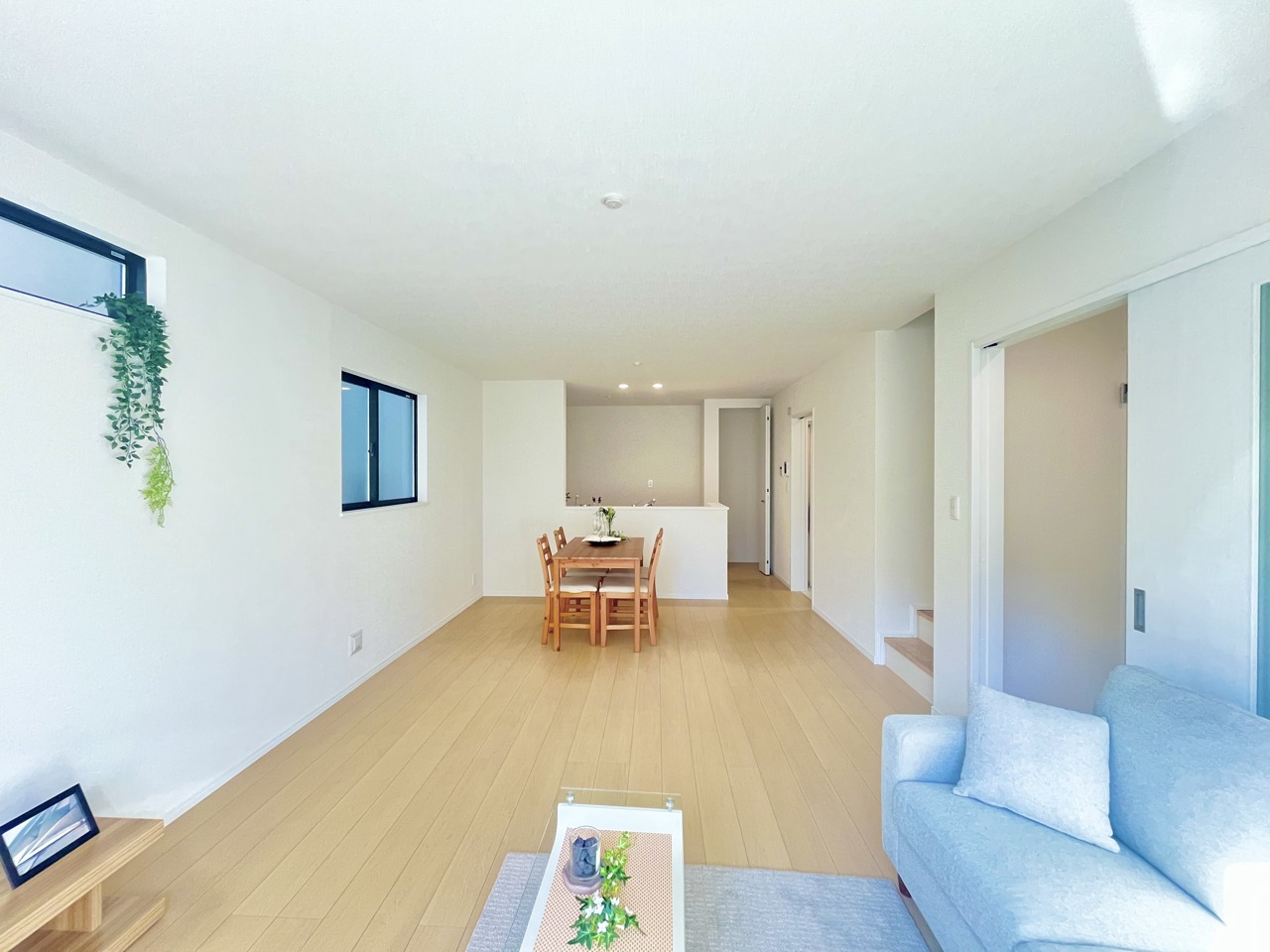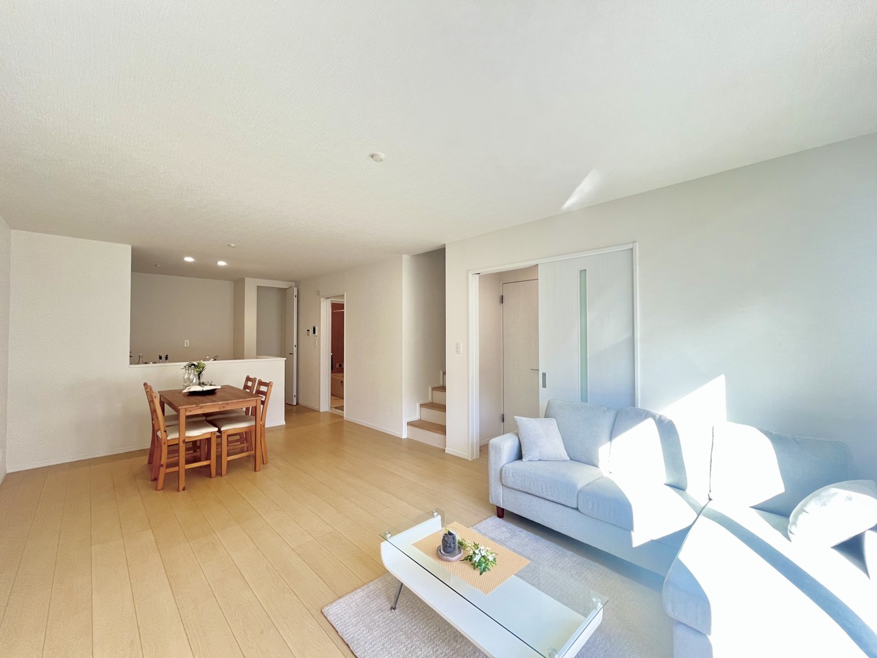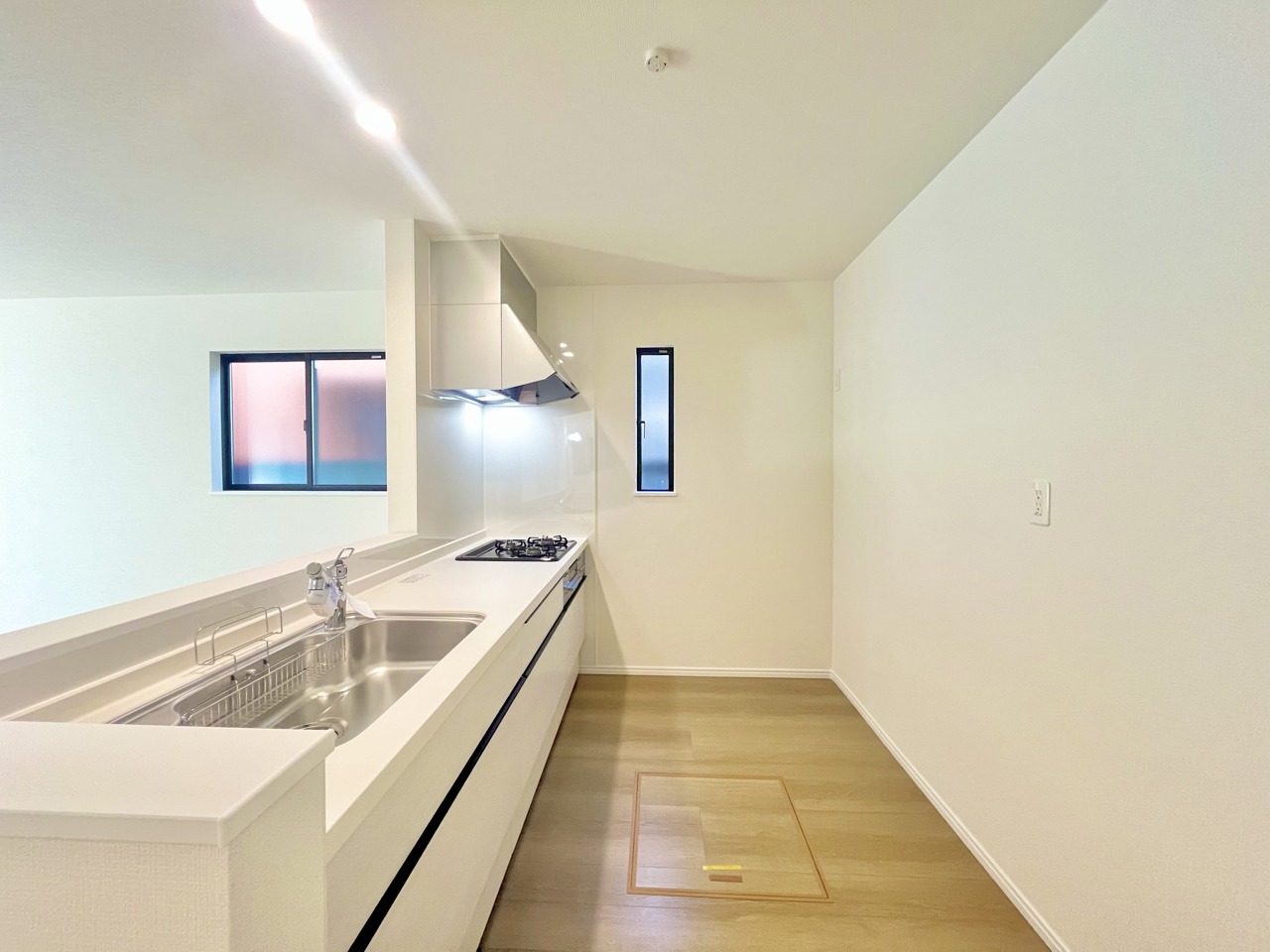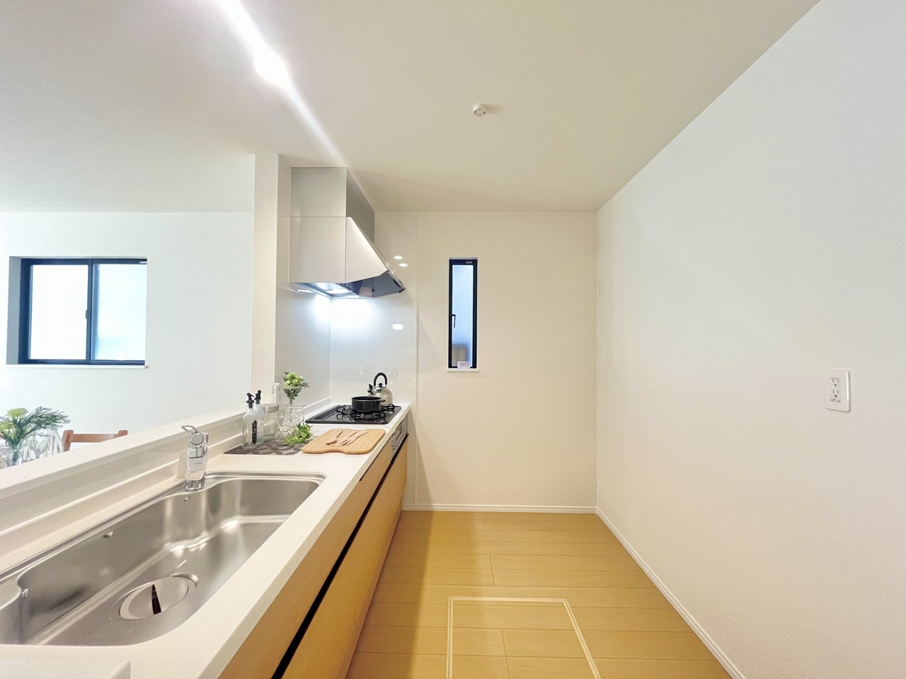 B号棟 どんな家具にでも相性が良い清潔感ある白色調のクロスを採用。主張しすぎない配色、耐久性にも優れた床材は日々のメンテナンスも楽に、快適に過ごして頂けるよう考えられています。 2025/12/26m