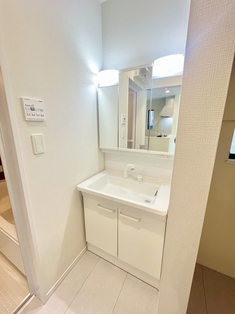 A号棟 お出かけ前の身だしなみに一歩差がつく三面鏡。ミラー裏にはたっぷり収納もございます。 2025/12/26m