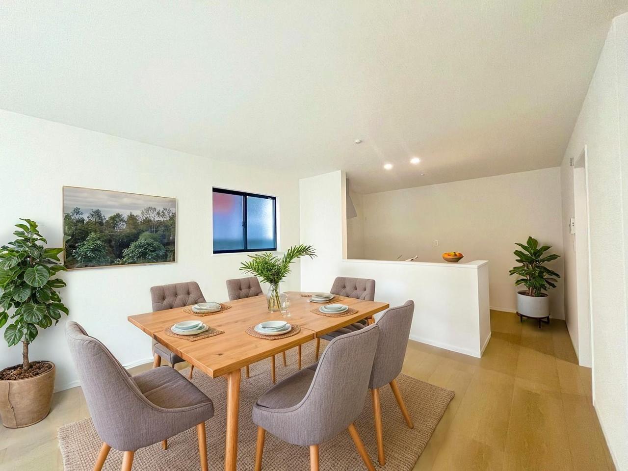 B号棟 家族団欒のリビング。陽光差し込む食卓には家族の会話とスマイルが溢れます。いつまでもここで食卓を囲みたくなる、そう感じさせてくれるスペース。 2025/12/26m