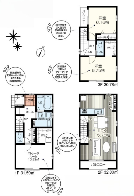 | 間取 | 2SLDK+2WIC (LDK15.75帖、S10.93帖、洋室6.75帖、洋室6.16帖) | ||