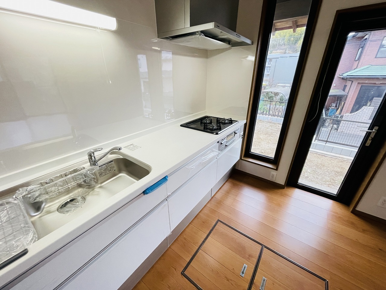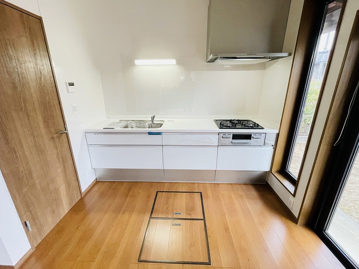 キッチンコンロスペースの近くには、空気の入れ替えが可能な開口部を設置!! お料理をする際には、換気扇を回しながら匂いが籠らない様に開放してお料理もお楽しみ頂けます。