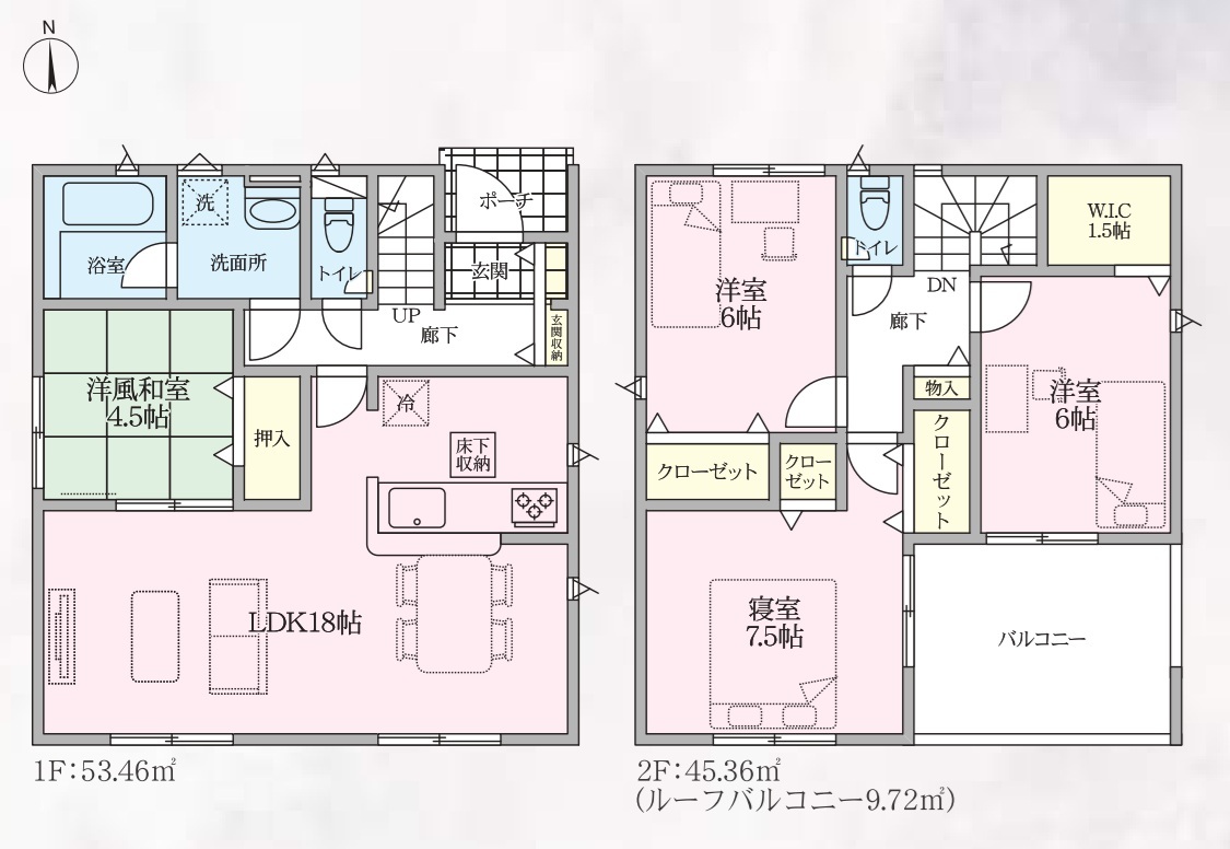 | 建物面積 | 97.19m² ~ 98.82m² 実測 | ||