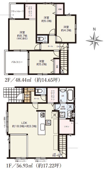 | 間取 | 4LDK (LDK22.2帖、洋室8.7帖、洋室5.2帖、洋室5.0帖、洋室4.3帖) | ||