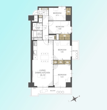 | 間取 | 4LDK (LDK16.3帖、洋室6.3帖、洋室5.9帖、洋室4.8帖、洋室4.1帖) | ||