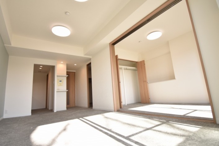 洋室はモダンなデザインと機能性を備え、快適な生活空間に。明るい窓から差し込む自然光が広々とした空間をさらに明るく開放的に感じさせます。