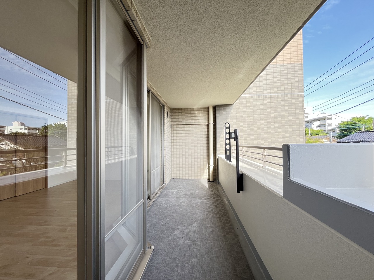 陽ざしが差込む明るいバルコニー。奥行きのあるバルコニーはお洗濯時に助かります。