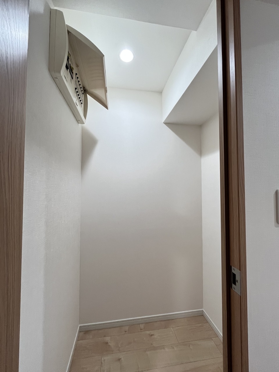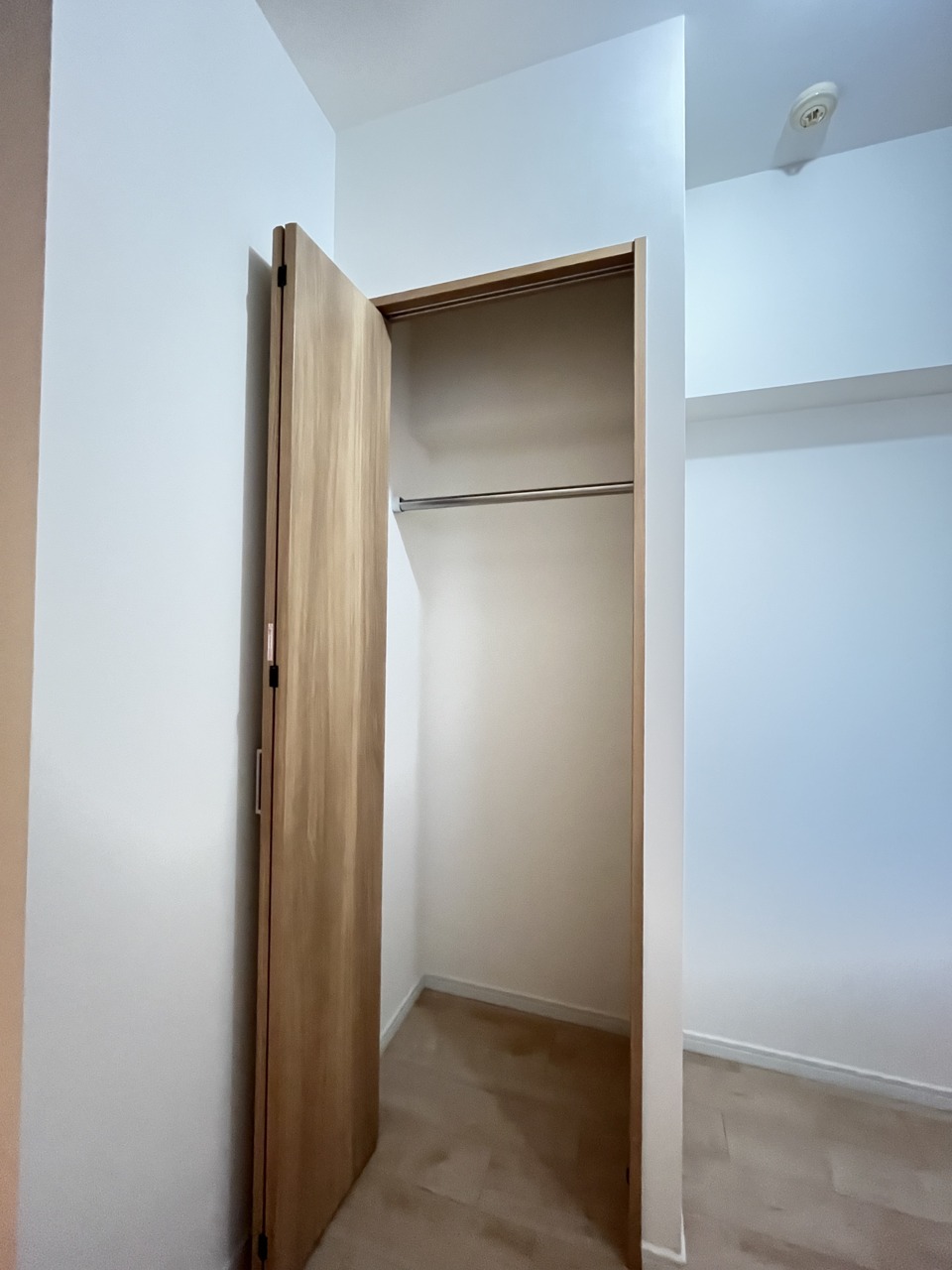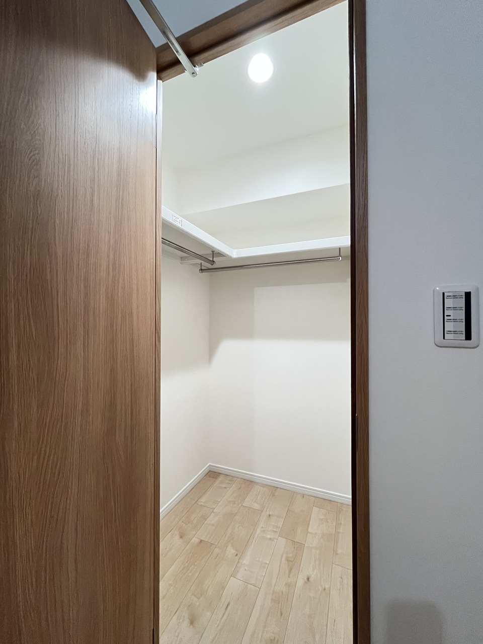 明るい床材が、広がりと清潔感を感じさせる収納スペース ウォークインクローゼット
