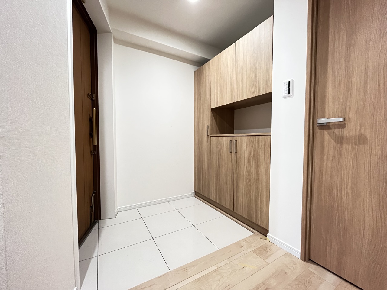 明るく開放的な玄関、靴の脱ぎ履きもしやすく、収納も豊富でご家族皆様の靴をスッキリ収納できます。