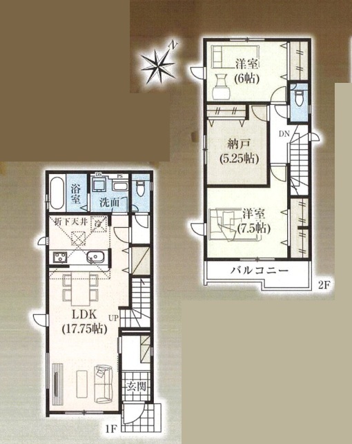 | 間取 | 3LDK (LDK17.75帖、洋室7.5帖、洋室6帖、洋室5.25帖) | ||
