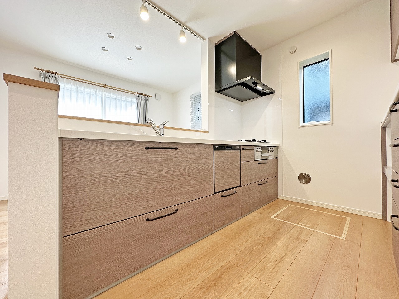 リビングで遊ぶお子様を見守りながらお料理ができる、対面キッチン。