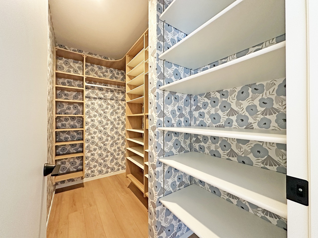 キッチン裏には大型のパントリー兼ウォークインクローゼットがございます。
