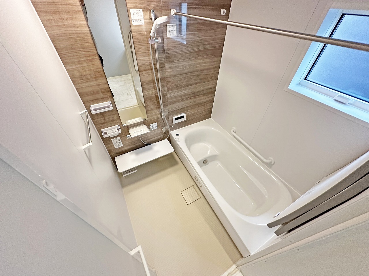 広々1坪タイプのゆったり浴室ユニット。防カビ・抗菌素材なのもうれしい。