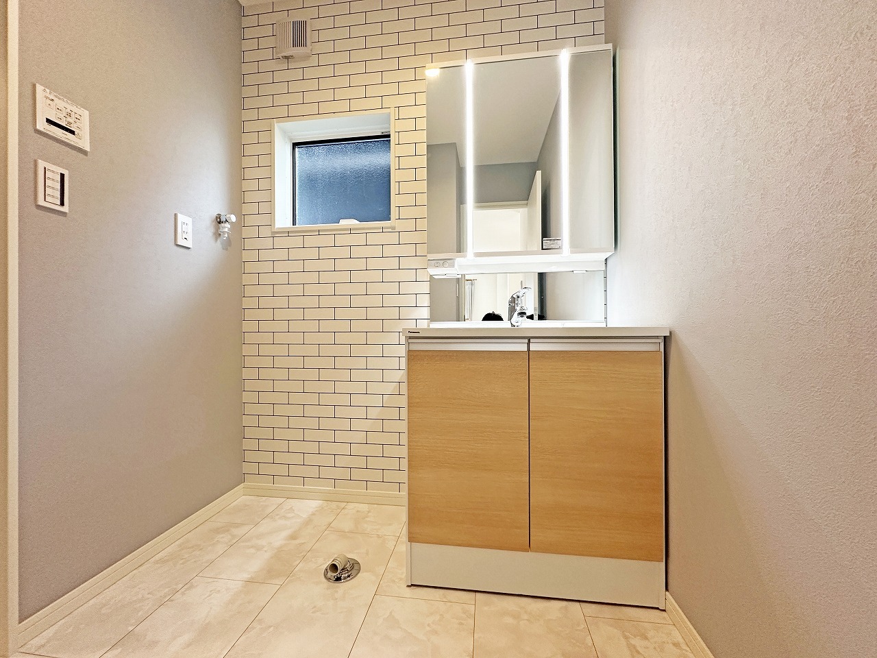 洗面室にはうれしいリネン収納があります。