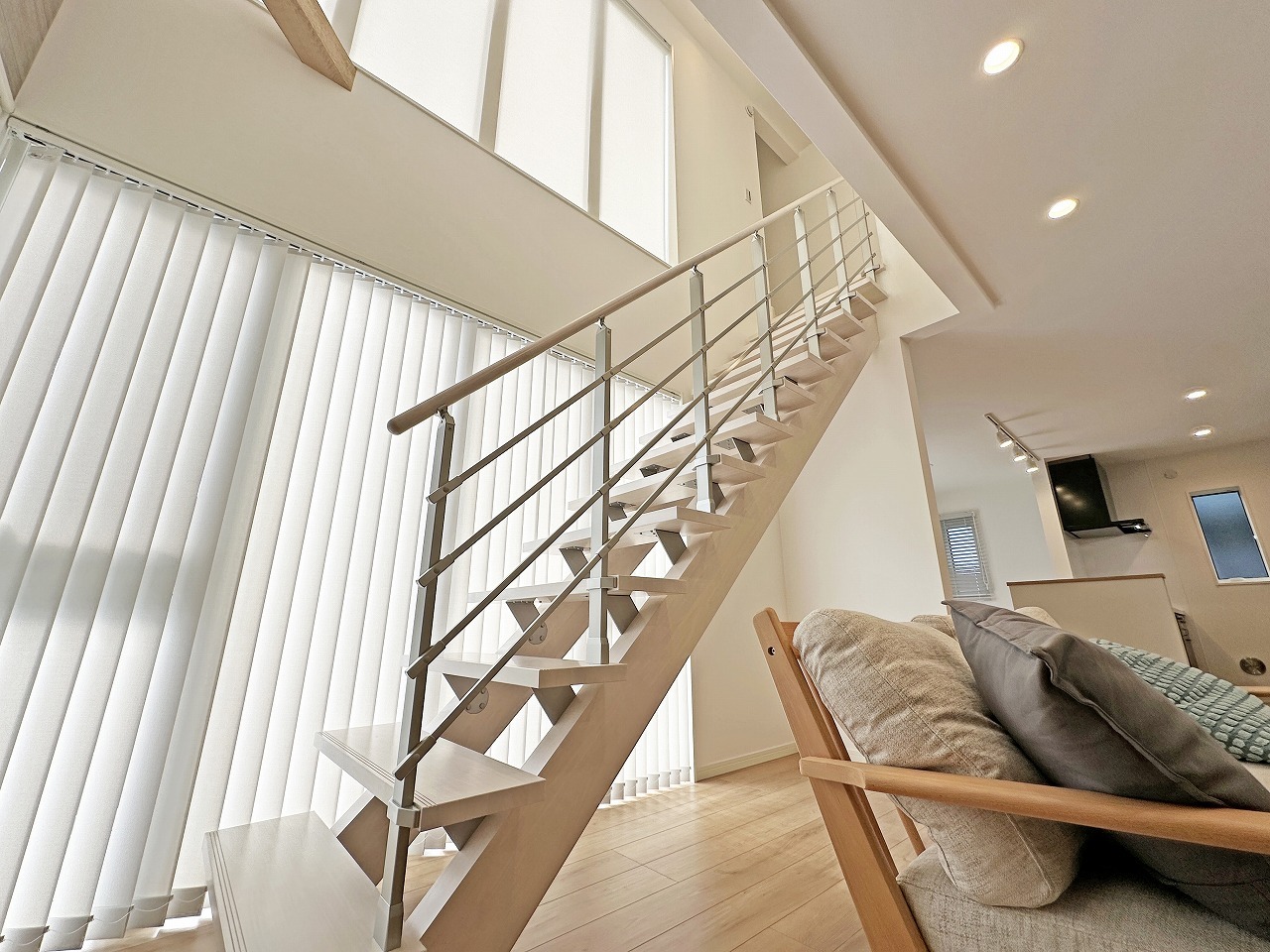 おしゃれなシースルー階段のLDK