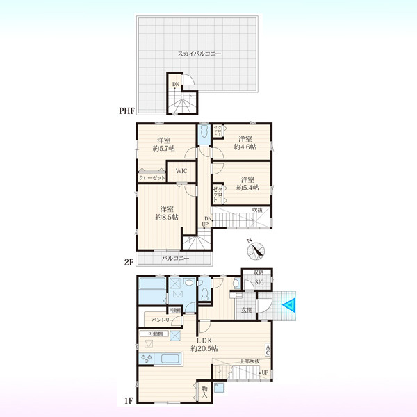 - ※完成予想図はいずれも外構、植栽、外観等実際のものとは多少異なることがあります。