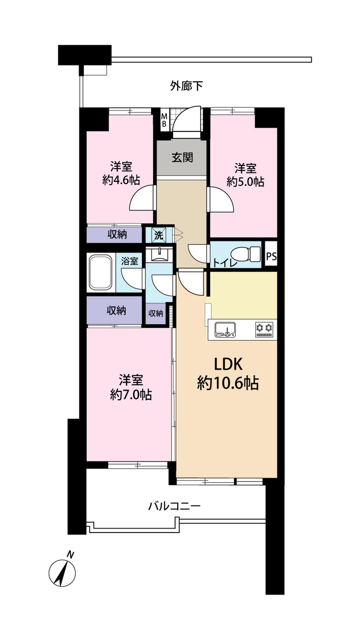 | バルコニー面積 | 7.45m² 南東向き | ||