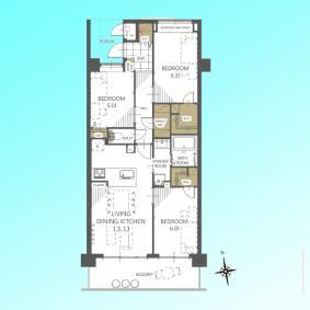 | 間取 | 3LDK (LDK13.1帖、洋室6.3帖、洋室6帖、洋室5帖) | ||