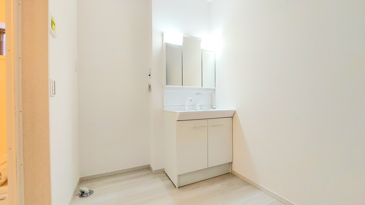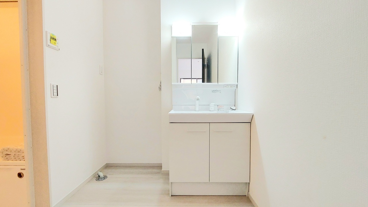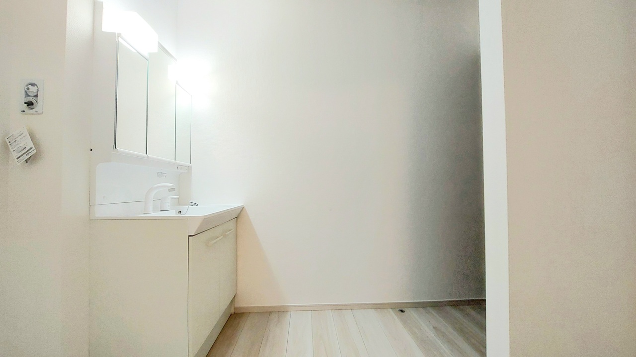 1号棟 お出かけ前の身だしなみに一歩差がつく三面鏡。ミラー裏にはたっぷり収納もございます。 2026/02/13m