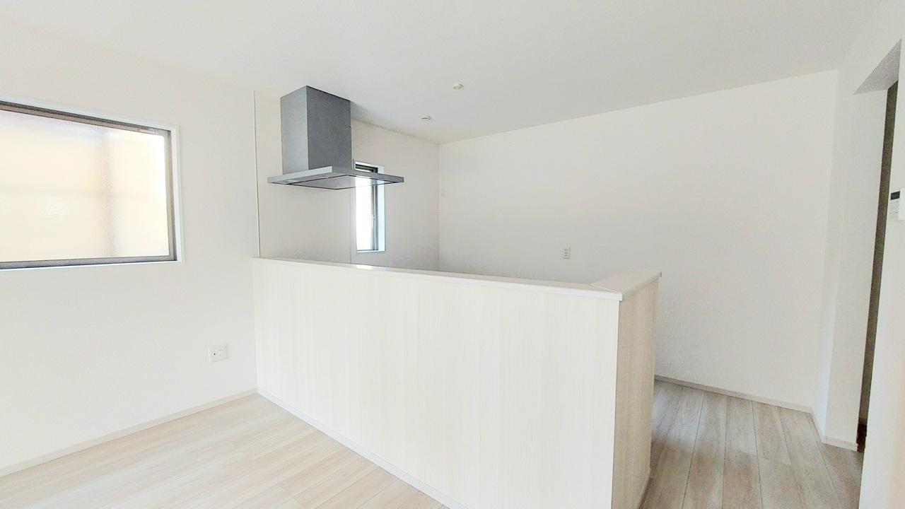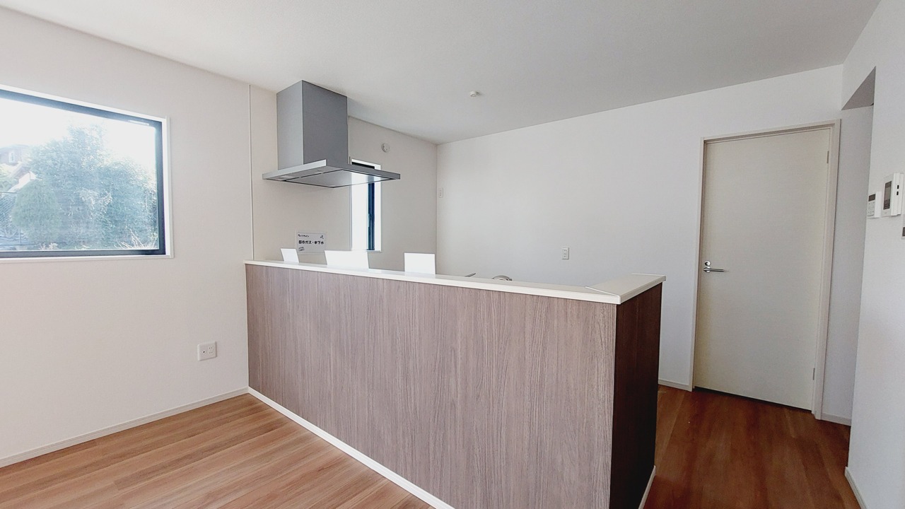 2号棟 リビングにいる家族の顔が見渡せるカウンターキッチン。お料理もより一層おいしく、楽しく。食器棚を背面に設置しても十分な広さを確保しています。 2026/02/13m