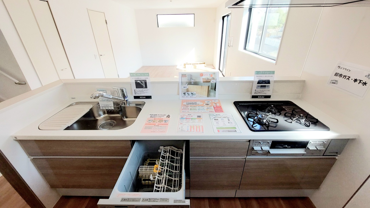 1号棟 家事時間を短縮できる食洗器付き、毎日の負担を減らしてお料理を楽しめる嬉しい設備です。 2026/02/13m