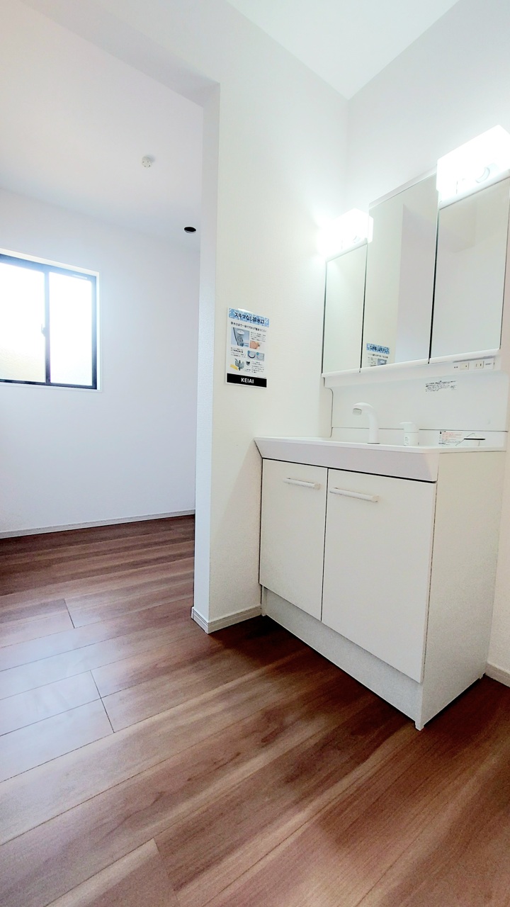 2号棟 使い勝手の良い洗面台、窓があることで換気もしやすく清潔感のある空間を保てます。 2026/02/13m